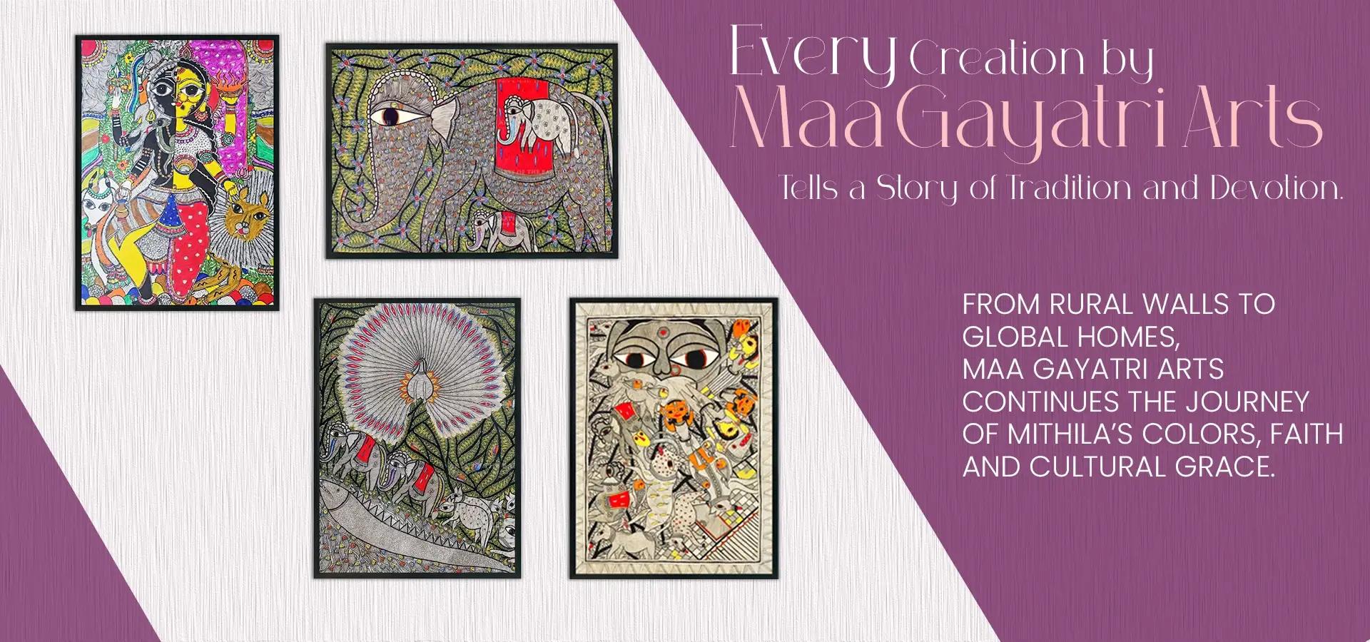 Maa Gayatri Arts presents the best Madhubani artwork, handcrafted with devotion and precision by skilled artists from Mithila. Each piece reflects authentic cultural heritage, vibrant storytelling, and timeless artistry. Explore our collection of authentic Madhubani paintings — where tradition meets creativity, and every stroke celebrates India’s rich artistic legacy.